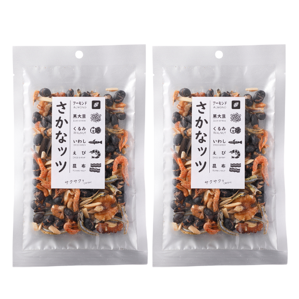 海の幸の片口いわし、えび、昆布に、ビタミン・ミネラル豊富なアーモンド、黒大豆、くるみをミックス。ポリポリとした食感が心地よく、ついつい手が伸びるおいしさです。