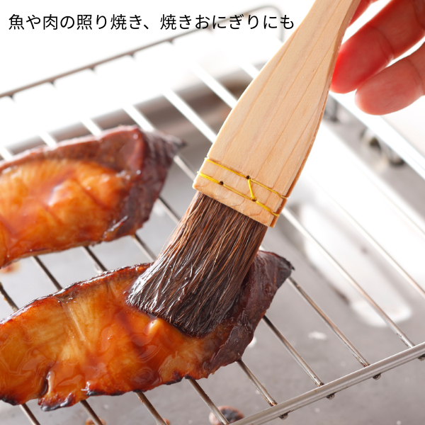 ・熱に強く、しなやかな馬のたてがみを使っているので、デリケートな食材も傷つけません。毛足が長いため塗りやすく、たれをたっぷり含むのでむらなく塗れ、美しく仕上がります。