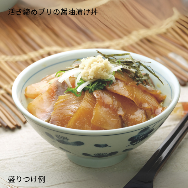 [活き締めブリの醤油漬け丼]ブリ(高知県産)、醤油加工品(みりん、醤油(大豆・小麦)、鰹節、米)、ジンジャー