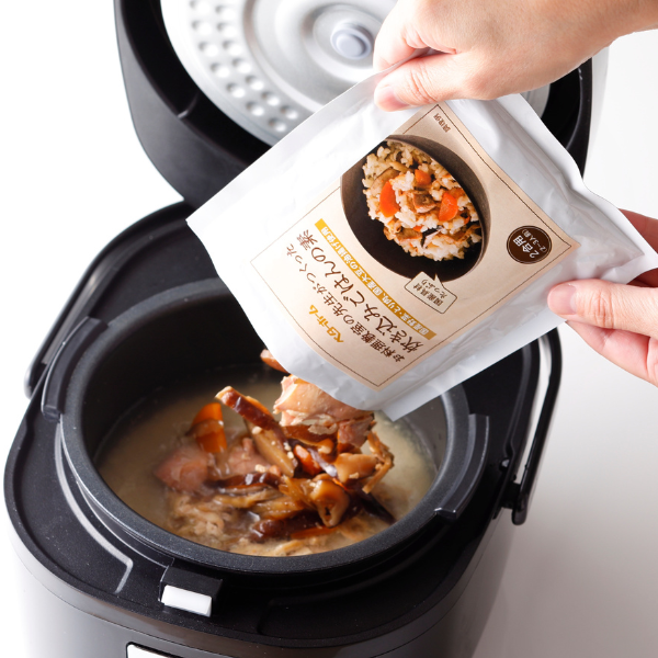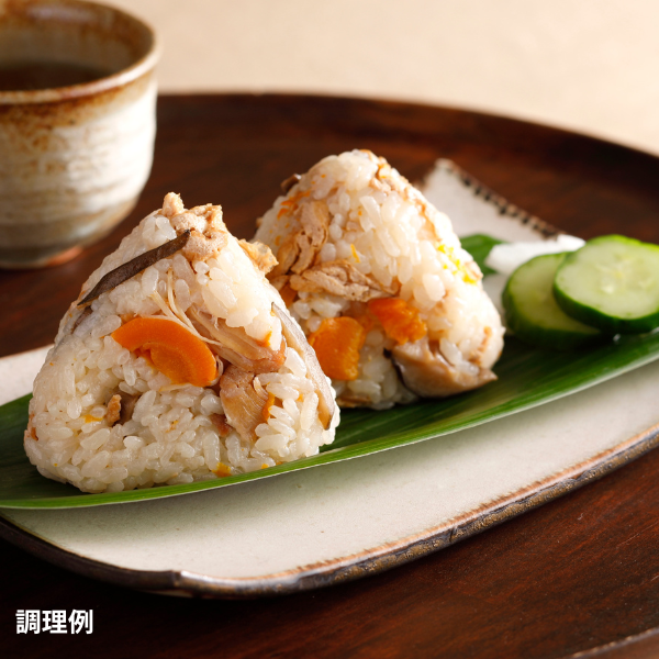 - 洗った米2合を炊飯器に入れ、通常の水加減にします。そこから水60ml(大さじ4)を減らし、本品を入れて炊いてください。