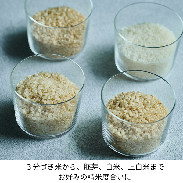 ダイヤルひとつで精米度合を調節できます。玄米の栄養素を残した3分づき米から、5分づき、7分づき、胚芽、白米、上白米まで、お好みの精米加減に仕上げられます。 さらに古くなったお米もおいしく食べられる再精米モードがあるのもうれしい!