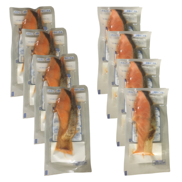 「万越屋」のさかな総菜はいつも大人気。今回は脂のりのよい銀鮭を味噌漬け焼きと西京漬け焼きに仕上げました。約300℃の過熱水蒸気で焼き上げるからふっくら。鮭のうま味と2種類の味噌の風味が渾然一体となり、ごはんにもお酒にもよく合う一品です。
