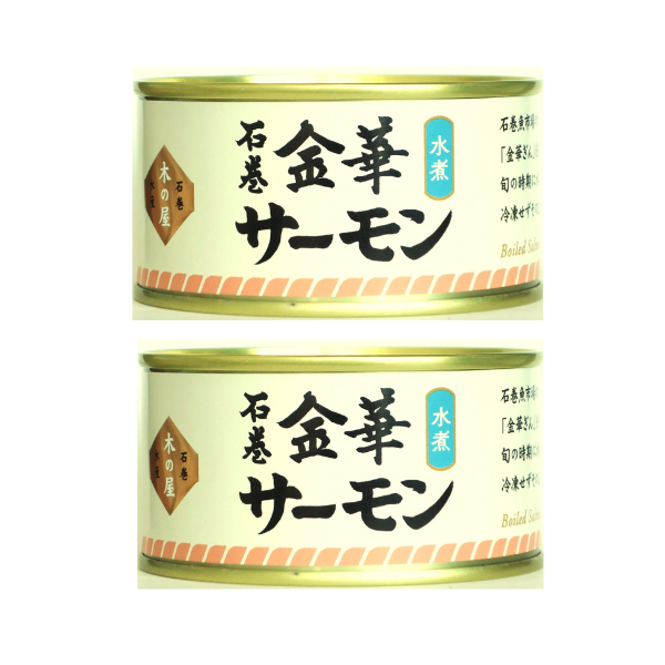 宮城県石巻港へ水揚げされたブランド銀鮭 「金華ぎん」を鮮魚のまま煮て缶詰にしまし た。冷凍していないので、煮汁の透明感や身 のやわらかさが段違い。水煮缶は食塩だけ、 醤油煮缶は地元産のしょうゆと喜界島の粗 糖だけで仕上げています。缶詰の概念を変えるほどのおいしさをぜひ味わってください。