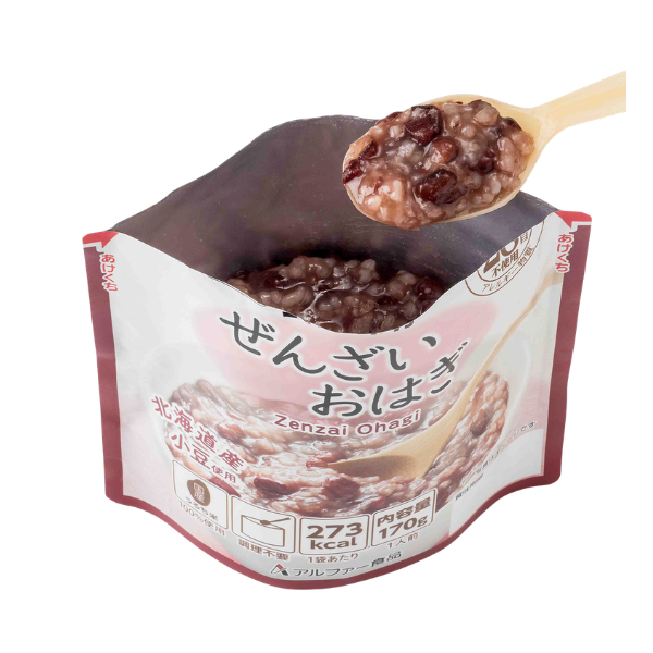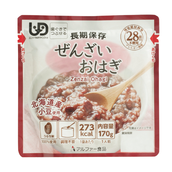 おはぎを軟らかく煮てぜんざいにしたような味わい。甘さも程よいので小さいお子さまからご年配の方まで食べやすく、28品目の食物アレルギーに対応。常備しておくと安心です。
