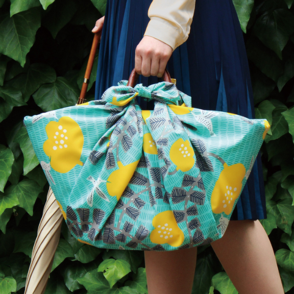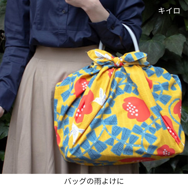 日本の知恵が詰まったアイテム「ふろしき」が撥水加工に!包んだ物が濡れず、濡れた物も包めるので便利に使えます。100cm×100cmの大判サイズですが、小さくたためるので、いつものバッグに入れておけば大活躍すること間違いなし。水をはじくので急な雨から荷物やバッグをカバーしたり、レジャーシートやテーブルクロス、水や汗で濡れたウエアを持ち運ぶなど、様々な用途でご利用頂けます。新柄のハチドリとお花のモチーフ。横糸にリサイクルポリエステルを使用しており、環境にもやさしいアイテムです。