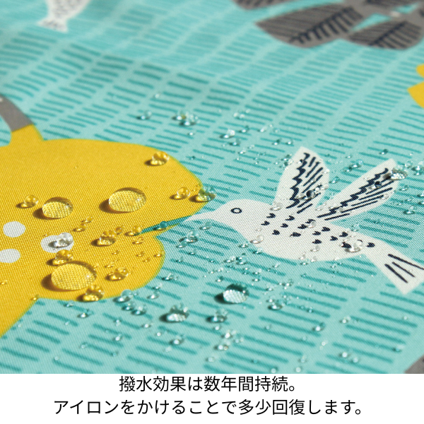 [お手入れ方法]手洗い。通常は数年間ご使用いただいても撥水効果は持続しますが、洗濯や摩擦により撥水効果が弱まった場合は、当て布をして中温のアイロンを表面にかけると撥水効果が多少回復します。