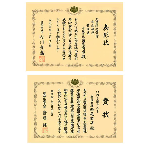 - [手火山花かつお] かつおのふし(静岡県焼津製造、鹿児島県枕崎製造)